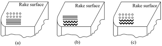 Researchers have explored various types of texturing the surface of cutting tools to reduce friction. Some studies have focused on the rake surfaces [44,45,46,47], some on the flank surfaces [48,49], and some on both surfaces [42,50] simultaneously, forming dual-textured cutting tools. This study focused on the influences of texturing on the tools in dry cutting conditions and only included the relevant significant literature that met this criterion.