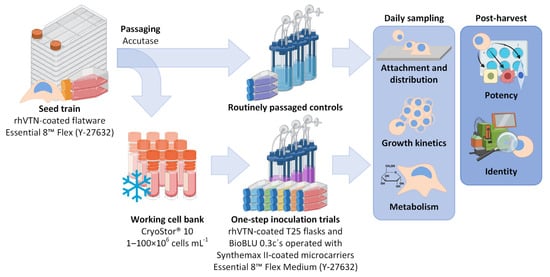 - Seth, G.; Hamilton, R.W.; Stapp, T.R.; Zheng, L.; Meier, A.; Petty, K.; Leung, S.; Chary, S. Development of a New Bioprocess Scheme Using Frozen Seed Train Intermediates to Initiate CHO Cell Culture Manufacturing Campaigns. Biotechnol. Bioeng. 2013, 110, 1376–1385. [Google Scholar] [CrossRef]