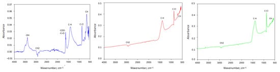 The interaction of the PVC-based carbons with infrared light was analyzed to assess the potential alterations in the samples’ chemical structures. FTIR spectra of the PVC-based activated carbons are presented in Figure 2.