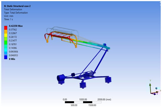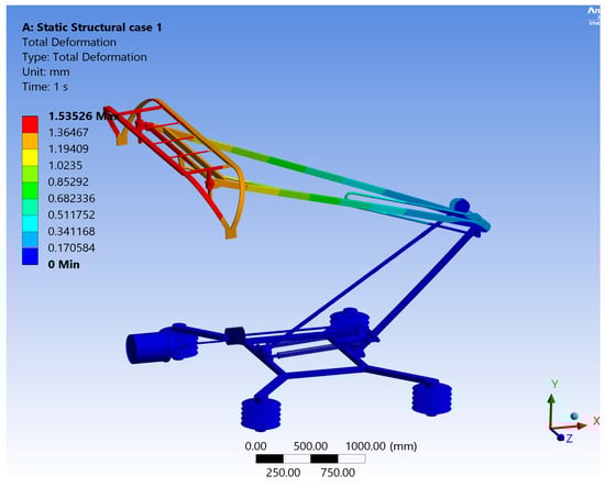 Figure 6. Total deformation distribution plot obtained on the cast-iron pantograph.