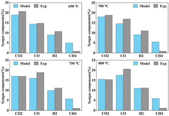 The high-temperature syngas produced during gasification passes through a heat exchanger to convert thermal energy into steam. Then the liquid split separates the vapor into three streams. One stream is sent back to the gasifier as a gasifying agent, while another preheats the air-gasifying agent and biomass. The remaining stream is used for syngas humidification to prevent carbon deposition in downstream equipment []. The gasifying agent uses a mixture of air and steam, which increases the H2 content and calorific value of the syngas while reducing tar production [,].