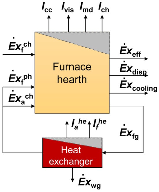 Figure 2 shows the exergy equilibrium model of the furnace hearth and the whole furnace (containing the heat exchanger in the flue).