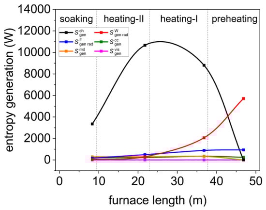Distribution of entropy generation in each furnace zone.