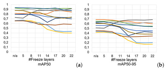 In this work, YOLOv5 is used in various training regimes, both trained from scratch and using transfer learning and fine-tuning. The core concept of transfer learning centers around using a pre-trained model and adapting it to a different task. This adaptation is achieved by selectively training only the uppermost layers of the model. In this structure, the lower layers are dedicated to extracting features, while the upper layers focus on classifying and detecting these features. The effectiveness of this approach is greater when the pre-trained model has been trained on a general enough dataset or when the original and new tasks are closely related, aspects which are investigated in Section 5.