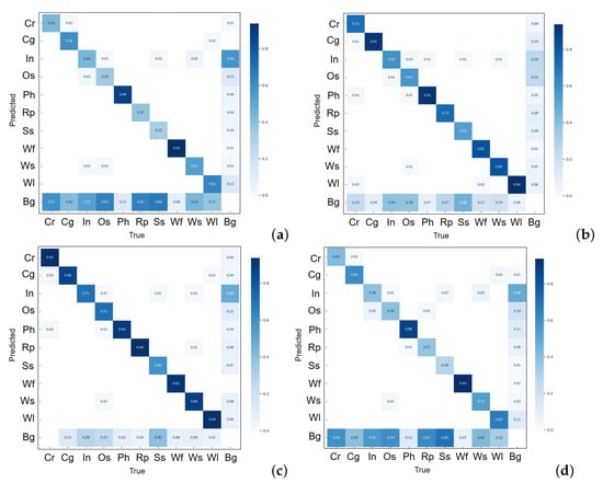 The F1 score results in Table A3 demonstrate strong performance in detecting crescent gap (Cg) and waist folding (Wf), with F1 scores consistently high across all folds, particularly notable for Cg with scores above 0.96. In contrast, the model struggles with inclusion (In) and silk spot (Ss), indicated by their notably lower F1 scores, aligning with the trends observed in precision and recall. Other defect types like crease (Cr), welding line (Wl), oil spot (Os), punching hole (Ph), and rolled pit (Rp) show moderate performance with some variability across folds. The average F1 scores, ranging from 0.816 to 0.851, suggest a relatively consistent performance across different data subsets, though with a slight decline in later folds. This table reinforces the findings from previous tables, highlighting the model’s strengths in certain defect types and underscoring areas needing improvement, particularly for defects where both precision and recall are lower.