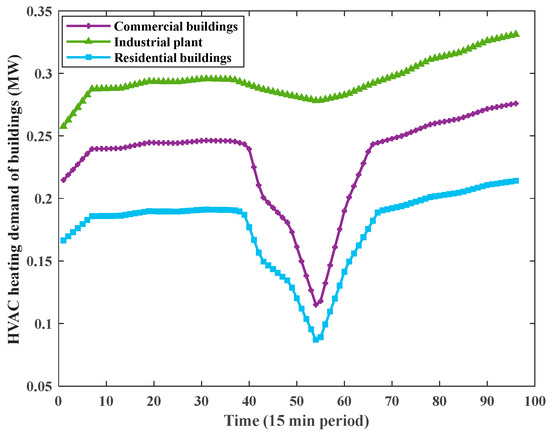 This paper focuses on a nearly zero-energy coastal urban district with multiple communities and high penetration rate of RES, and its schematic structure is sketched in Figure 1. The generation of wind onshore, offshore, and solar PV is considered to realize higher shares of RES. The district is composed of three main social functional areas (residential, commercial, and industrial communities), which have energy demand for different purposes.