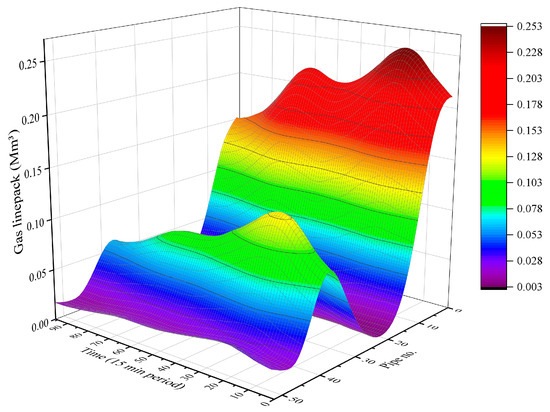 It is worth mentioning that the two equations above describe the linepack from different perspectives, the first equation indicates that the linepack of a specific pipeline is proportional to the average pressure and the pipe characteristics whereas the second equation complies with the mass conservation.