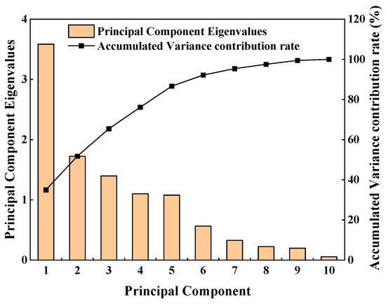 The results of principal component analysis are depicted in Figure 2. The general criteria for principal component selection are that the eigenvalue should be greater than 1, and the cumulative contribution rate of the selected principal components should exceed 85%. However, due to the relatively modest size of the sample and the dataset in this study, all 10 principal components are retained [28].