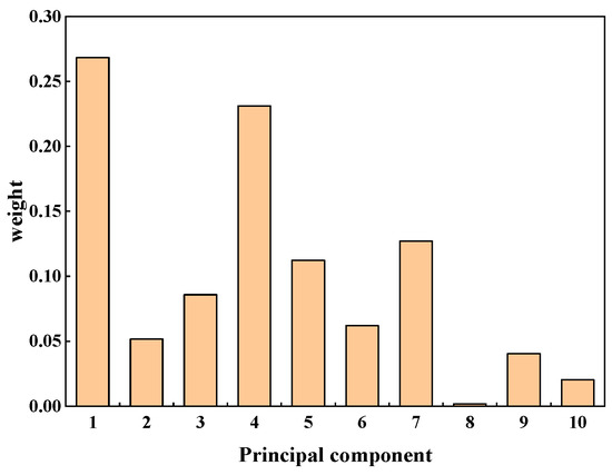 Principal component weight. Entropy values were calculated, reflecting the amount of uncertainty or disorder associated with each variable. Variables with higher entropy were given lower weights, emphasizing the more informative features.