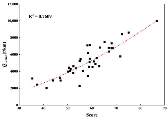 Figure 6 depicts the relationship between Q12mon and the comprehensive evaluation score without using principal component analysis [34]. When compared to the analysis model using PCA (Figure 7), it is evident that the direct analysis of factors on reservoir quality has a correlation coefficient of only 0.7609. In contrast, the model developed in this study achieves a higher correlation coefficient of 0.9132. The good consistency between reservoir quality evaluation results and production indicates that the model built in this study can effectively reflect the enhanced production potential of the reservoir.