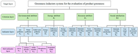 Where the indicators have a sub-indicator layer, the green attribute of the indicator layer is obtained by multiplying the weight and the efficiency index corresponding to each indicator on the indicator layer: