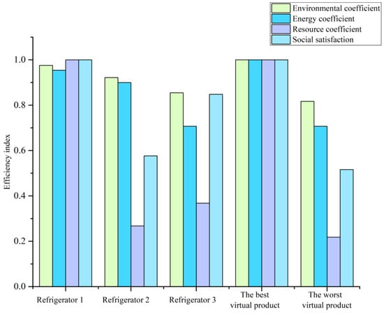 When it comes to one-dimensional sustainability evaluation, the efficiency index equals the sustainability of products, and therefore its value can serve as a yardstick by which to measure the sustainability of products. A higher index value indicates a greater level of environmental friendliness for the product.