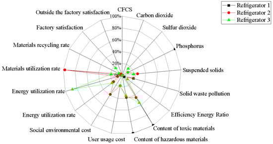A sustainability evaluation indicator system for refrigerators can provide an objective basis for the comprehensive performance evaluation of refrigerators [,]. Xiao et al. [] provided a cradle-to-grave LCA for a typical made-in-China refrigerator to evaluate the environmental impacts. Today, the refrigerator enterprises are also facing the customer- and data-driven personalized customization production, and they have the responsibility to provide evaluation reports of the bespoke refrigerators’ sustainability according to relevant regulations. Generally, a data-driven analytics framework for sustainability performance includes four basic steps: data acquisition, storage and preprocessing, data mining, and data application services []. Here, the data collection method based on the IoT is not covered [], and the data application service is dedicated to the evaluation of the refrigerator sustainability.