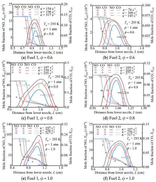 3.1. NO/CO Emission Characteristics in Laminar Counterflow Flames of Hydrogen-Rich Syngas Fuels