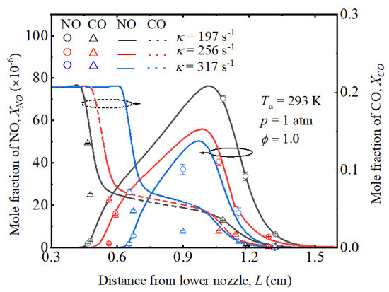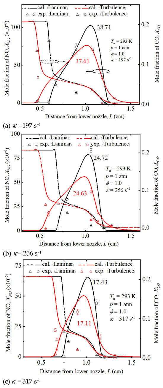 3.2. NO/CO Emission Characteristics in Turbulent Counterflow Flames of Hydrogen-Rich Syngas Fuels
