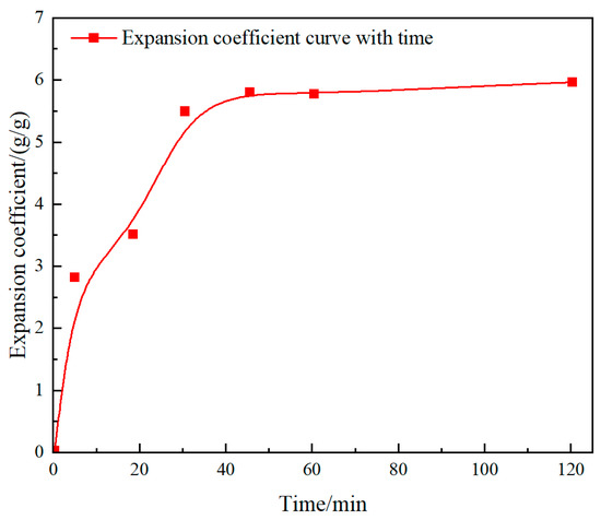 The purpose of the experiment of selecting the type of temporary plugging agent is to test the weight change (dry weight, and weight after water absorption) of different temporary plugging agents after water absorption and compare their expansion effect, so as to obtain a temporary plugging agent with good plugging performance. The evaluation results of a temporary plugging agent are shown in Figure 6. The temporary plugging agent (CPG-H620) expands sharply and rapidly after encountering water and can expand to 90% of the maximum weight within 30 min, and up to 6 times the original weight, so it can form a filter cake that is airtight with good sealing.