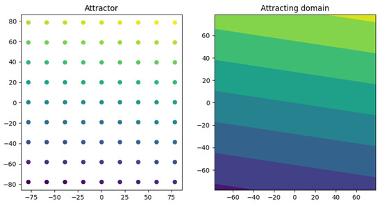 - Domain of attraction (DoA): The DoA of a PG with group number is a value sequence of positive integers that is the set of (transient) cells with the same group number and step number . Thus, the DoA can be interpreted as the discretization of the basin of attraction.
