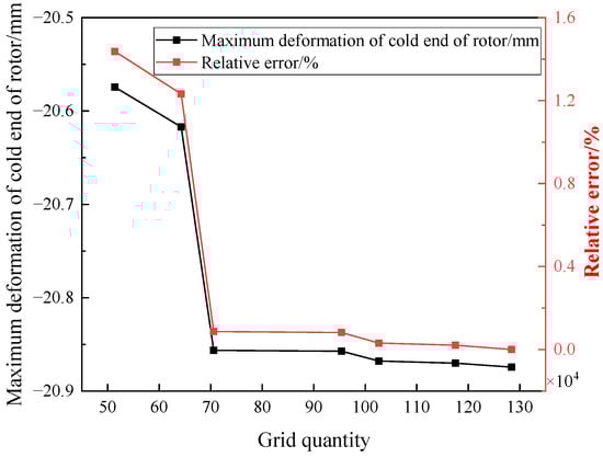The boundary conditions, including the inlet and outlet temperatures of the flue gas and air, the flow rate, and the wall surface of the air preheater segment plates, were defined based on the operating parameters of the air preheater under BMCR condition. The maximum deformation of the outer edge of the air preheater segment plates’ cold end serves as the foundation for grid-independent verification. Deformation outcomes for various grid numbers are depicted in Figure 4.
