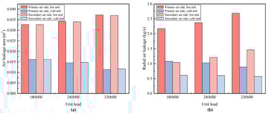 Radial air leakage area and air leakage volume of the primary air side and secondary air side. (a) Hot end; (b) cold end.