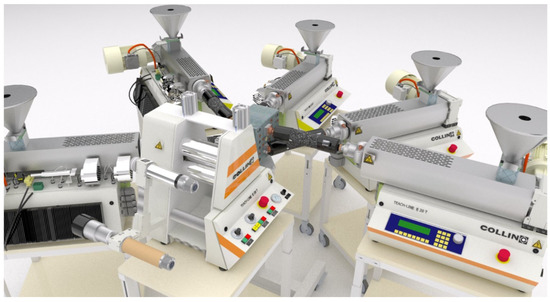 On the other hand, scaling up conventional and nonconventional processes continues to be a challenge for obtaining biopolymers, ensuring quality, and promoting sustainability through eco-design and the recyclability or biodegradability of materials [21]. Currently, the extrusion process has shown significant improvements compared to other techniques because it enables layered design in materials, thereby enhancing the performance of physical properties. Specifically, for films intended for primary packaging where barrier properties are crucial, co-extrusion technology offers an excellent cost–benefit ratio compared to other conventional manufacturing techniques [22,23].