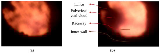 Due to the proximity of the RGB values of the pulverized coal cloud to the inner wall where they come into contact, differentiating the boundaries became a challenging task. To address this issue, the edge of the inner wall was determined by utilizing raceway images captured during an all-coke operation, e.g., prior to or after furnace stoppages. This approach was found to feasibly and accurately locate the boundaries of the inner wall; the results of this strategy are illustrated in Figure 4.