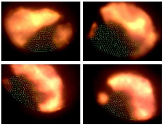 Figure 7 shows examples of the super-pixel effect diagram created by the method, where the green grid regions in the images represent the calculation areas for the weight of the pulverized coal cloud. The weight setting area basically covers the pulverized coal cloud region, which aligns with the expected model outcome.