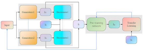 In addition to the aforementioned research findings, transfer learning [12] has displayed extensive applicability in various fields. Nonetheless, transfer learning fails to attain normal training outcomes in small datasets, particularly in scenarios where data is missing and has a significant likelihood of resulting in classification failure. To tackle this issue, a novel dataset enhancement method coupled GAN with relativistic discriminators and conditional transfer learning (RCGAN-CTL) is proposed, which enables the compensation of small or missing data samples in transfer learning. RCGAN, a network designed by Li [13] to merge infrared and visible images, is utilized in this study to investigate an enhanced RCGAN network that is applied to the medical imaging domain. The enhanced RCGAN network is employed in the data generation module to produce high-quality synthetic images, while the data classification module uses a CTL structure with suitable image complementary datasets participating in the transfer learning training. The primary advantages of the RCGAN-CTL approach are summarized below.
