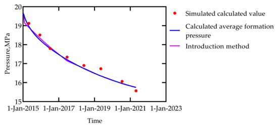 The average formation pressure is a critical quantity for the dynamic analysis of oil and gas reservoirs, as well as the determination of the recovery since it serves as an important indicator of the production process of these reservoirs. Accurately determining the average formation pressure, which varies in real time, is very important. Numerous elements influence formation pressure, encompassing a range of geological variables such as sedimentary diversity and diagenetic heterogeneity observed within reservoirs. These variables include variations in bedding planes, disparities in porosity, intricate pore structures, mineralogical composition differences, and the heterogeneous physical properties of rocks. These disparities can lead to differences in pressure and permeability across the varied pore and fracture networks, significantly impacting the productivity and flow characteristics of the formation fluids. Consequently, these factors play a crucial role in shaping the distribution and evolution of formation pressure, as well as its distribution and evolution process [1]. There are many methods for analyzing and calculating the average formation pressure; measurement and calculation methods are commonly used to determine the average formation pressure [2,3,4]. Many scholars have proposed average formation pressure methods for the measured method, including Matthews et al.’s MBH method for reservoirs, the point pressure calculation method for gas wells, etc. Most of these methods calculate the average formation pressure of oil reservoirs and gas reservoirs by pressure-recovery test wells [5,6,7,8,9]. However, the actual measurement method requires a long time to shut down the well for formation pressure recovery. The test cycle is long, and as a result, the average formation pressure cannot be tracked in real time. It will also cause different degrees of economic losses to the normal production of the oil and gas reservoir [10,11]. The calculation method can determine the pressure in real time, and the commonly used basic methods are the material balance equation and the flowing-material balance method; the former requires gas wells to conduct the shut-in pressure recovery, it is difficult to obtain the critical point-formation pressure of gas wells in the proposed steady state with the latter, and there are certain limitations in both methods [12,13,14]. Therefore, it is very important to calculate the average formation pressure with no well shut-ins by using the production dynamic information, which is relatively easy to obtain, and then provide data support for the subsequent calculation of the fractional phase recovery of the reservoir.