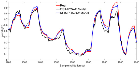In order to test the performance of the RSIMPCA-SW model, the relevant predicted values and the real values are displayed in Figure 6 and Figure 7, further, where the OSIMPCA-E approach is introduced as the comparison.
