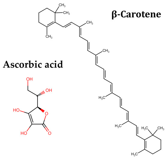Chemical structure of β-carotene and ascorbic acid.