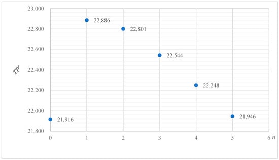 The optimal total profit (TP*) under various values of n.