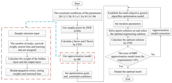 The capsule-type plate optimization problem of the heat exchanger is a multi-objective optimization problem. The optimization process is described as follows and the whole flow chart is shown in Figure 6.