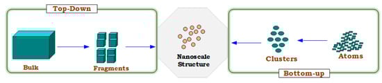 - Abid, N.; Khan, A.M.; Shujait, S.; Chaudhary, K.; Ikram, M.; Imran, M.; Haider, J.; Khan, M.; Khan, Q.; Maqbool, M. Synthesis of nanomaterials using various top-down and bottom-up approaches, influencing factors, advantages, and disadvantages: A review. Adv. Colloid Interface Sci. 2022, 300, 102597. [Google Scholar] [CrossRef] [PubMed]