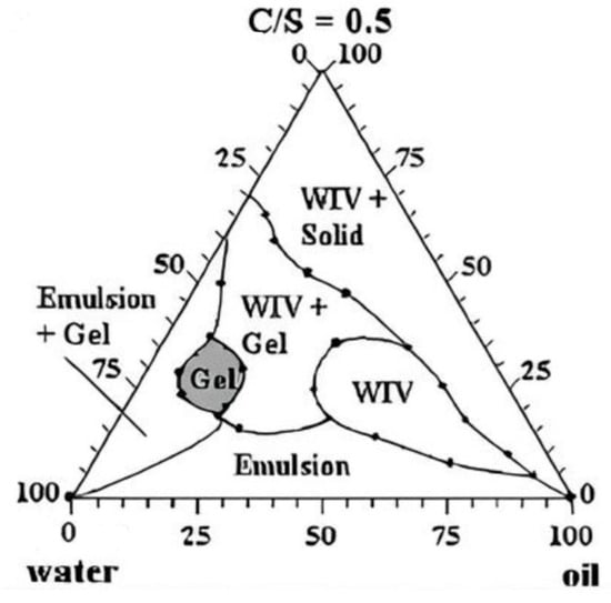 Pseudo-ternary diagram showing the gel region of the fracturing fluid [].