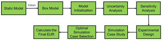 The matching parameters are ultimately selected based on the uncertainty and sensitivity analysis results of the reservoir parameters. These are then integrated as variables into the ED workflow. Utilizing the central composite sampler algorithm, over 100 simulation cases are generated, ensuring that the dynamic trends of gas and water production in each pilot well closely align with actual production dynamics. The simulations aim to achieve a congruent cumulative gas and water production. The study involves analyzing production characteristics, calculating the simulation deviation of cumulative gas and water production, and selecting the top ten simulation cases. Probability-based estimated ultimate recovery (EUR) predictions are formulated based on these selections. As the primary focus of this study is on numerical simulation, subsequent paragraphs will illustrate this from the stage of model initialization.