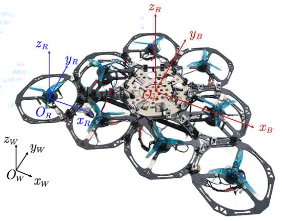 The earth coordinate frame W: or inertial coordinate system, is characterized by adherence to the right-hand rule, with its three axes following the convention of the East–North–Up direction. The position of the MRFA in the earth coordinate system is denoted by . The attitude of the MRFA is denoted by , where represent the roll, pitch, and yaw angles, respectively.