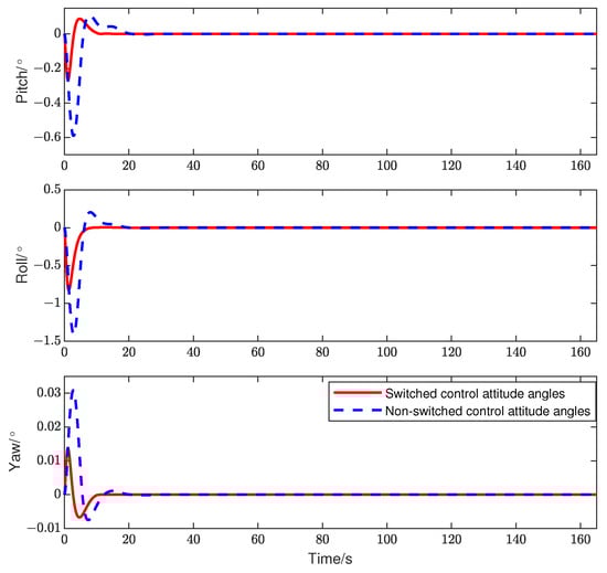 Comparison of attitude tracking curves at arbitrary switched controller and non-switched controller.