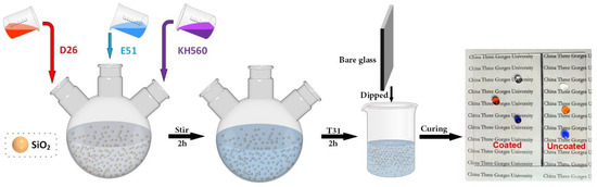 All reagents were used as received without further purification. 1,2-Bis(triethoxysilyl) ethane (D26), nano fumed silica (7-40 nm, 100 m2/g), tetrahydrofuran (THF), and isopropyl alcohol (IPA) were obtained from Macklin (Shanghai, China). Bisphenol-A-based epoxy (E51, AR grade) was purchased from Aladdin Chemical Reagents Ltd. (Shanghai, China). The curing agent (T31) and (3-glycidyloxypropyl) trimethoxysilane (KH560) were obtained from Yousuo Chemical Technology Co., Ltd. (Shandong, China). Glass substrates were purchased from Shitai Experimental Equipment Co., Ltd. (Shitai, China) and were cleaned ultrasonically with ethanol for 15 min and dried prior to use.