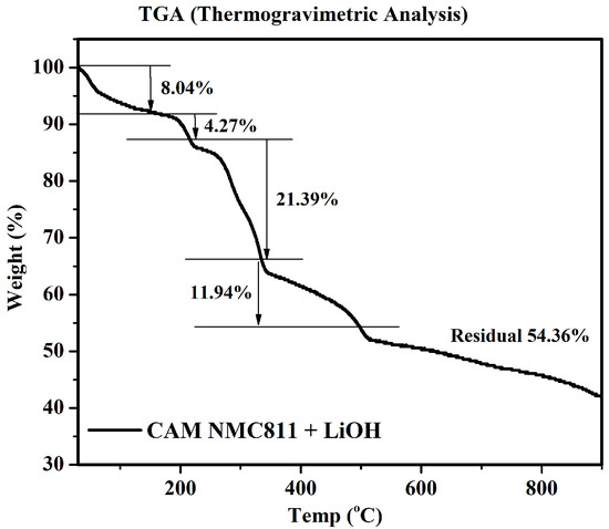 Thermogravimetric analysis (TGA) of NMC-811 cathode material.