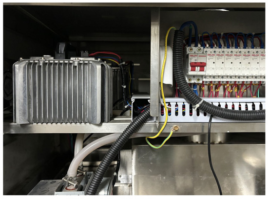 For this study, 220 V AC was directly used as the power supply for the whole system. As the maximum output voltage of the microwave power supply reaches 4.2 KV, we should pay attention to the operational safety of the experimental personnel in the process of designing the power supply, and we must correctly select the leakage protector, relay, and other related equipment. The final design of the continuous microwave power supply system is shown in Figure 9.