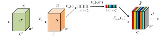 From Figure 2, it can be seen that matrix U is obtained from matrix X through mapping transformation using excitation function , , where , and represent the height, width, and number of channels of matrices X and U, respectively. The mathematical operations can be represented as
