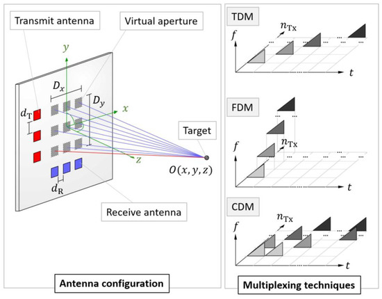 - Bleh, D.; Rösch, M.; Kuri, A.; Tessmann, A.; Leuther, A.; Wagner, S.; Weismann-Thaden, B.; Stulz, H.-P.; Rießle, M.; Sommer, R.; et al. W-Band Time-Domain Multiplexing FMCW MIMO Radar for Far Field 3D Imaging. IEEE Trans. Microw. Theory Tech. 2016, 65, 3474–3484. [Google Scholar] [CrossRef]