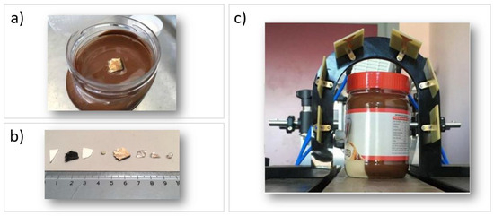 | [34] | 2021 | MW sensing (Antennas array) | 9.0–11.0 GHz | Detection of millimeter-sized intrusions (splinters of glass, wood or plastic, small pieces of jar caps) | Plastic or glass jar with hazelnut–cocoa cream |