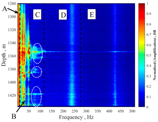 | 3 | Reservoir fluid flow | Horizontal strips | 55–116 Hz | It is related to the pore size, fracture angle, and openness and generally has a short extension, which may be divided into reservoir pore flow and reservoir fracture flow. |