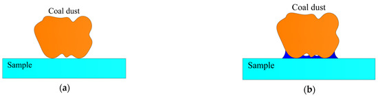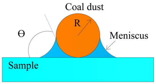 Although existing studies on particle adhesion have provided important insights, no studies on the adhesion of coal dust to material surfaces have been reported. Underground coal dust adhesion has unique and complex characteristics. Coal dust is a mixture of inorganic and organic materials [27] containing various functional groups [7] and has an irregular shape and complex surface roughness, topography, and pore structure. Moreover, the environment of underground coal mines is very complicated, particularly with regard to RH. Owing to underground water and spray dust reduction, the RH of underground coal mines is typically high, but fluctuates due to ventilation. These two aspects increase the complexity of the problem. The conclusions of existing studies on adhesion may not be applicable to the problem of underground coal dust adhesion.