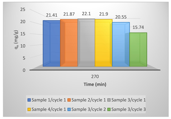 After each cycle, the adsorbents’ reusability was assessed by subjecting them to multiple adsorption cycles under the same optimized conditions. The regeneration and reusability efficiency were evaluated based on the percentage of the initial adsorption capacity of the fresh adsorbents.