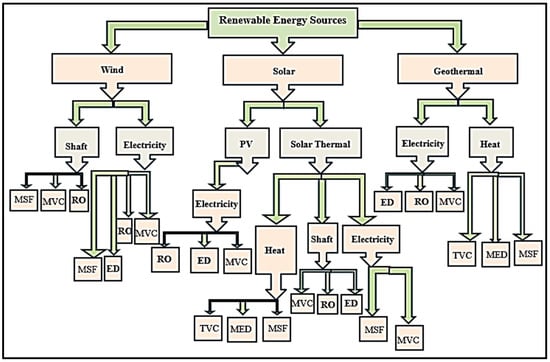 The most common combinations between renewable energy sources and desalination types (adapted from Eltawil et al. [6]). Reprinted/adapted with permission from Ref. (Eltawil et al. [6]) 2024, Elsevier.
