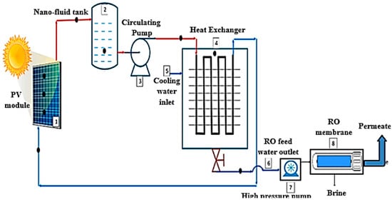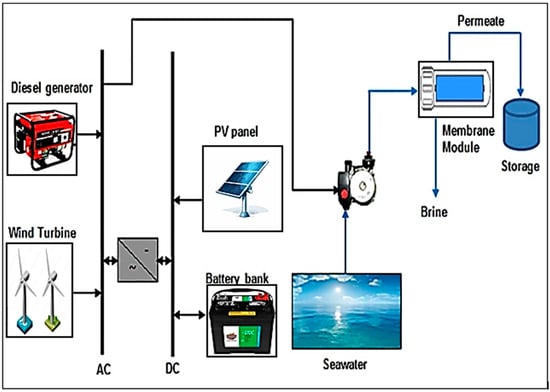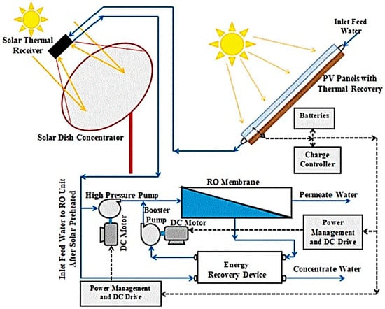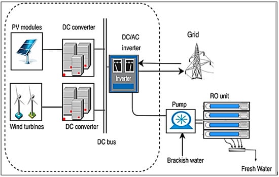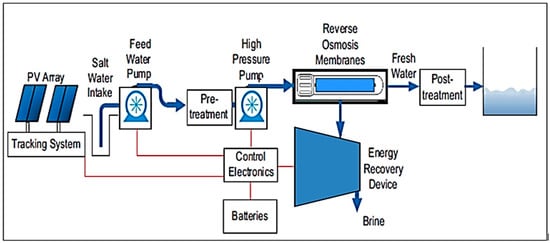 A representation of hybrid PV-driven RO desalination unit (adapted from Abdelgaied et al. [77]).