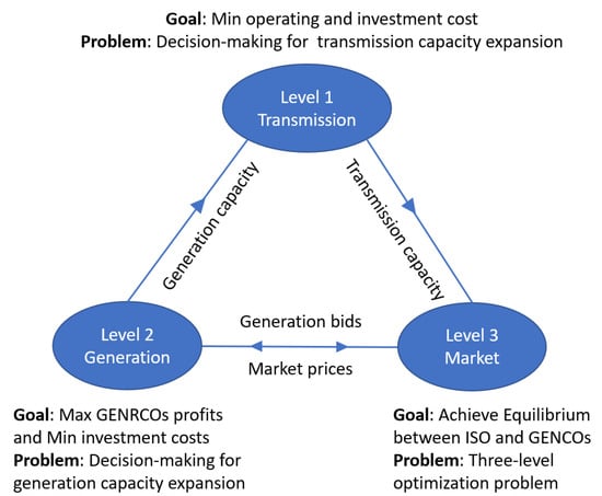 - Jin, S.; Ryan, S.M. A Tri-Level Model of Centralized Transmission and Decentralized Generation Expansion Planning for an Electricity Market—Part I. IEEE Trans. Power Syst. 2014, 29, 132–141. [Google Scholar] [CrossRef]