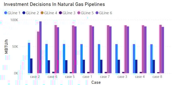 - Case 5: the installed capacities of the candidate natural gas pipelines are set 10% lower than in Case 1.